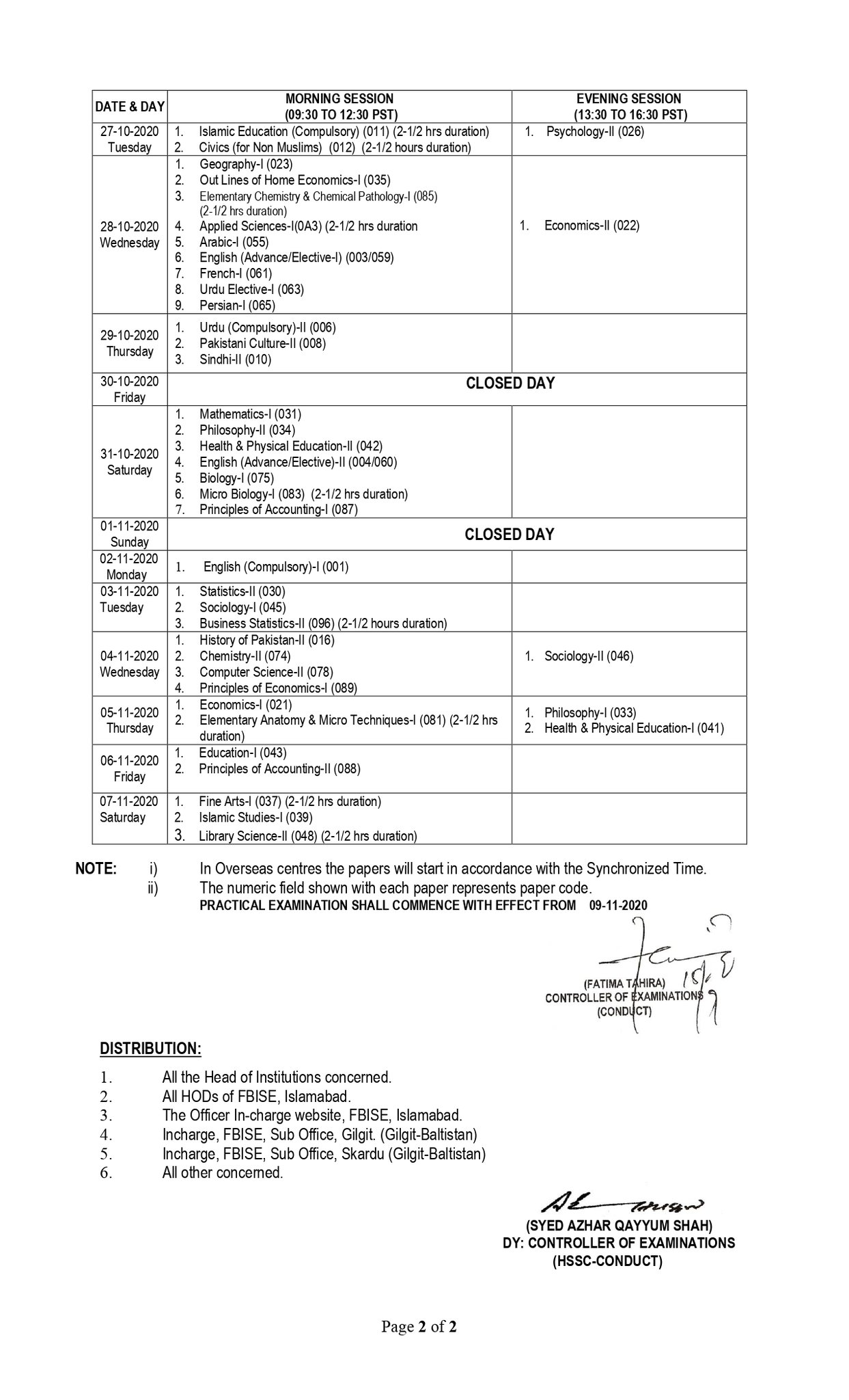 Fbise Official On Twitter It Is Hereby Notified For The General Information Of All Concerned That The Higher Secondary School Certificate Part I Ii Special Annual Examination 2020 Of The Fbise Islamabad