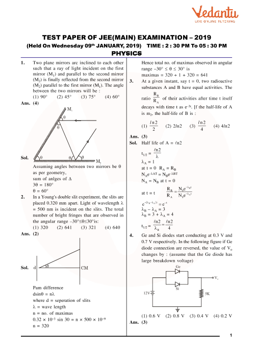Jee mains question paper vedantu. RELATED ARTICLES MORE FROM AUTHOR. JEE Main 2020 question papers for the exams held in January and September months are provided here. JEE Main 2019 question paper pdf download is provided by Vedantu.