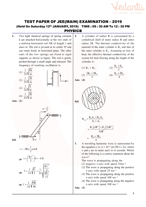 Jee Main 2020 Question Paper 9th Jan Shift 1 Jee Main Physics Jee Sprint 3 0 Vedantu Jee Youtube