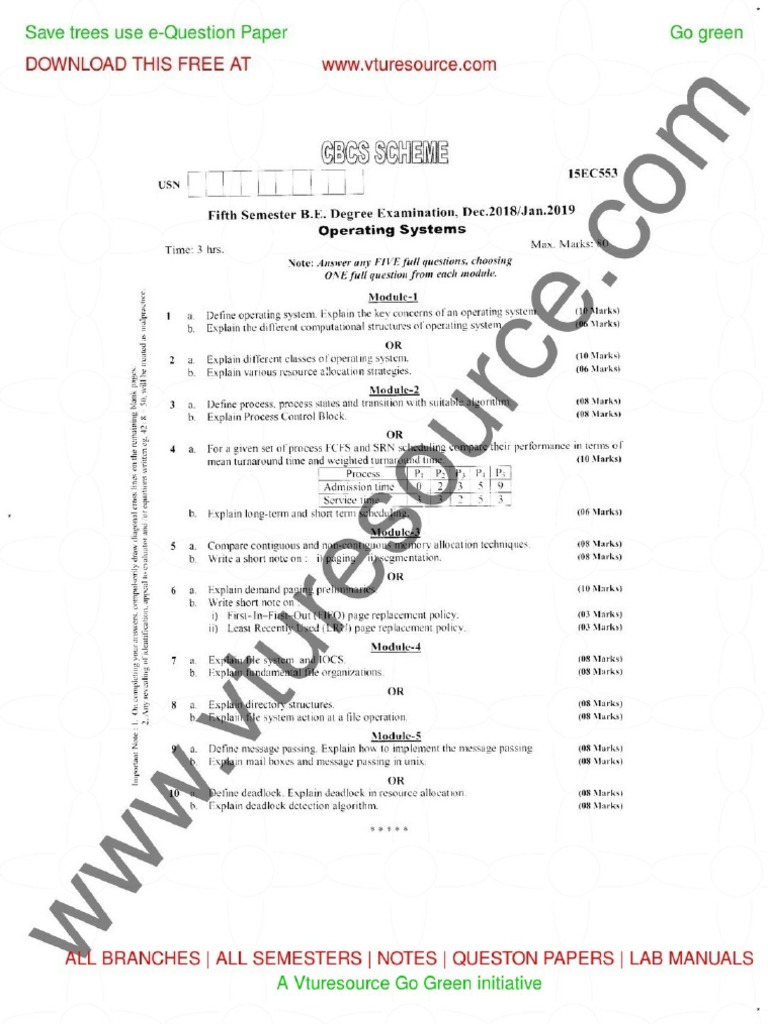 VTU Question Papers For All Semesters and Branches To do proper revision and understand the VTU Semester exam better you must have VTUs latest syllabus and study materials. Click the below link to download the 2018 Scheme VTU CBCS Notes of 18CS43 operating Systems. 22 rows Students who are searching for VTU Question Papers can find the complete list of.
